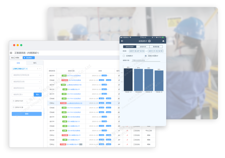 便攜式移動端巡檢,保障設(shè)備運(yùn)行正常,及時上報事故隱患。